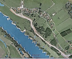Das Haus unter dem Landepunkt, dicht am Deich, ist es.